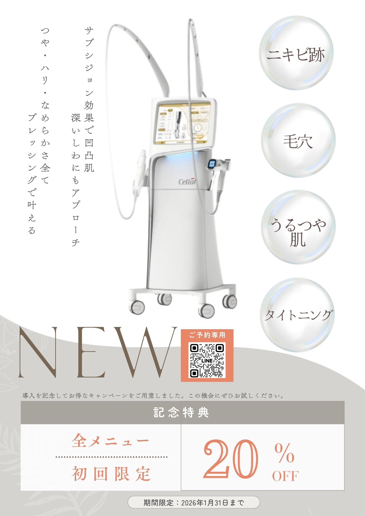 導入を記念して、全メニュー初回限定20%OFFのお得なキャンペーンをご用意しました。この機会にぜひお試しください。