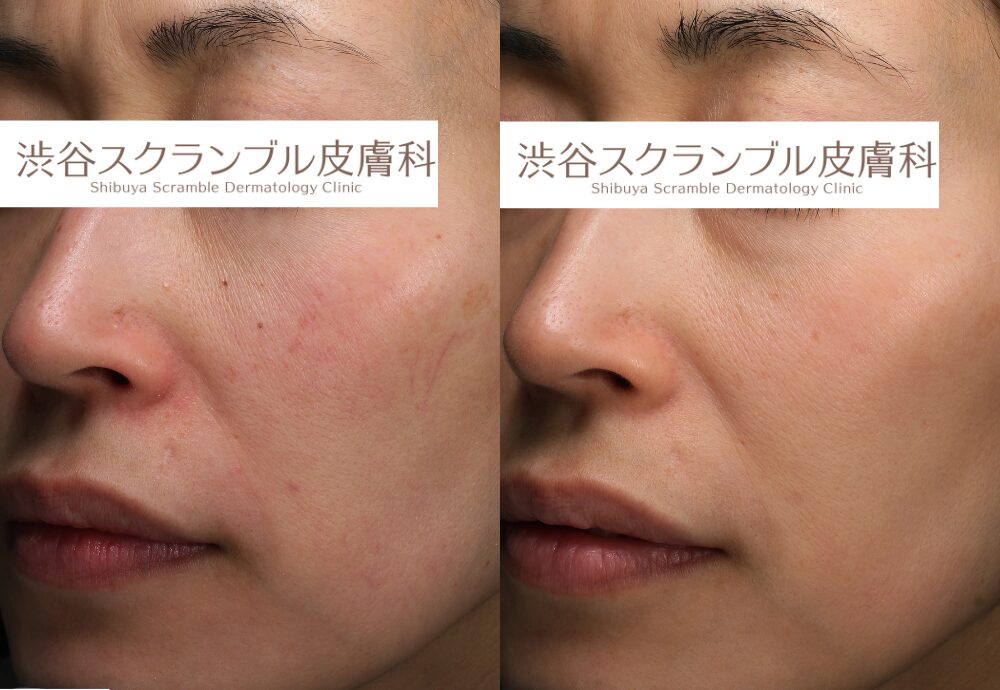 【副作用・リスク】照射後に赤みや色素沈着が生じることがありますが、徐々に消えます。